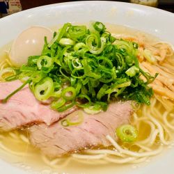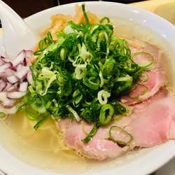 あっさり塩ですが、キチンと鶏油の味わいあり、青ネギ増しにして正解。紫玉ねぎのアクセント最高。柔らか支那チクも細切りで食べやすい。