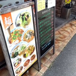 マンションの1Fで間口は広くありませんが、赤地の店名看板が3つ、各種メニューの掲示があります。
