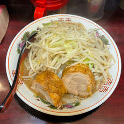 麺はゴワっとした硬さを感じさせるオーション麺で食べ応え充分、ヤサイとブタもボリューム◯