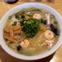 島根では珍しい甘い味付けのこってり醬油味のちゃんぽんです。具材は豚肉・うずら卵・キャベツ・もやし・人参・きくらげ・ねぎ・蒲鉾と量が多くボリュームがあります。