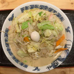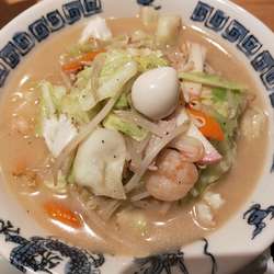 スープ ちゃんぽんのあの白濁したスープ。クリーミーで味わい深くすごく旨〜い!後半は卓上調味料の胡椒をかけると幾分キリリとしてこれもまた旨〜い!