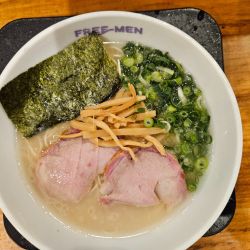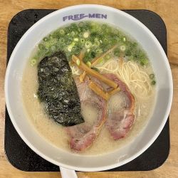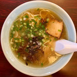 掲題と替玉(100円)購入して着席、平日ランチごはんサービスのご案内に… 思わずお願いw