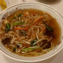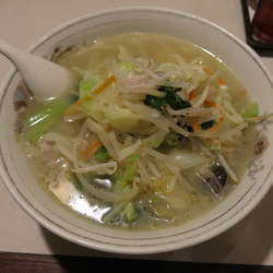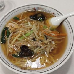 (月)19時、ご常連が多い印象、大変盛況ですね。緑鮮やか、食感抜群ニラがたっぷり、更に細切りタケノコが相乗効果を醸す。あっさり清湯スープにモッチリ麺、美味しい。単に中華が好きなのか、日暮里中華はハズレがない、と感じます。