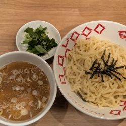こちらへくると昔を思い出しつけ麺熱盛をゆず三つ葉トッピング(150円)と共にオーダーします😁