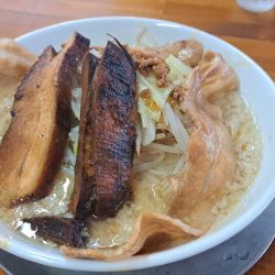 メニューが有り過ぎて迷った挙げ句、券売機でレギュラーメニューのつけ麺を購入、この店は麺の量と太さ、チャーシューの種類等を選べます、麺は中太の250gでチャーシューはがぶりで注文、つけ麺には〆のラーメンorお茶漬けが付きます、しばらく待って着丼、スープは熱々の二郎系のスープでつけ麺に... 続きを見る