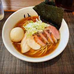 透明度の高い清湯スープは醤油強めの上品な鴨出汁です。トッピングの柚子入り肉団子や鴨肉、ユルユル煮卵のポイント高いっす。