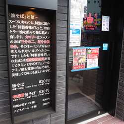 | メニュー | メニューの写真を見る 油そば:820円 並盛/大盛/W盛:同値 |