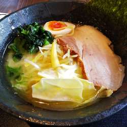 海苔3枚、チャーシュー、ほうれん草、半切れ味玉、ネギの千切りにスープには刻みネギかと思われるものが浮く。スープはとろみを感じる豚骨の脂身など粒々の口当たりがあるが臭みなどまったくなく、旨味が広がり、そこに苦味のない香ばしい魚介の風味に旨味がプラスされ、醤油のまろやかな旨味と風味が合わさり旨い。そこに中細麺がピッタリと合わさる、シコッとした歯切れが心地よい、さらに麺の香ばしい小麦... 続きを見る