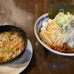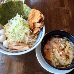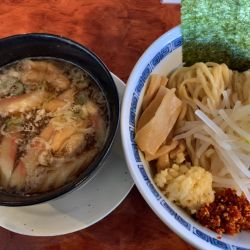 麺は中太の程よい加水具合でつるつる食べられる。スープは、オイリーな感だが甘酸っぱい味がなかなか面白い。