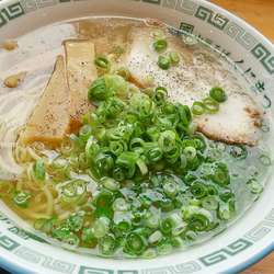 大手チェーン店に近い味のスープにピッタリのつるつる麺と、豚肉・かまぼこに沢山の種類の野菜をたっぷり使用。一番上には大きな海老もトッピングされ充実の一杯です。