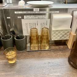 12時に入店、半地下のお店です。入店したら前客ゼロ、タッチパネル式券売機で購入後端っこのカウンターに着席。券を渡す際にスタッフに好みを聞かれます、「辛さ2」「痺れ2」でオーダー。