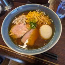 | 備考 | 『らーめん 改』の元店長さんのお店。 自家製麺は全粒粉入り太麺、替え玉と和えそば用の細麺、 全粒粉入りの細麺、手もみ麺、平打ち麺、 「特製鶏つけ麺」のみ入る もち小麦100%の幅広麺の常時6種類。 限定メニューは別途麺を打つ。 ※またワンタンの皮まで自家製で仕込んでいる。 看板メニューの「醤油そば」は店主は18歳まで鹿児島で育ち、 母親の出身地奄美大島の郷土料理鶏飯から発想を得る。 化学調味料無添加のスープに使うのは 鹿児島黒さつま鶏と枕崎産かつお節。 (以上は雑誌「散歩の達人」2022年12月号より) |