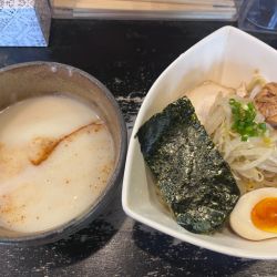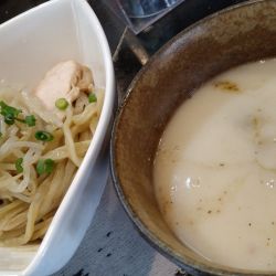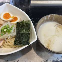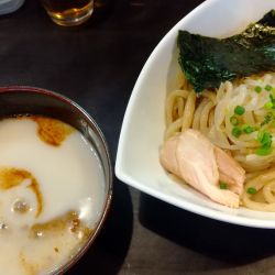| 備考 | 動物系ガラを一切使わず、数種のかつを節ほかの魚介系のみを用いたつけ汁ながら、物足りなさはなく滋味深い味わい。 麺は自家製。しかも製麺機を使わず、自らの身体と体重で麺のコシを鍛え、パスタマシンでカットしている極太麺は強烈なコシもあり食べ応え十分。 チャーシューの代わりに手作りパンチェッタを使用したりとかなりの拘りぶり。 出汁、麺、具と全てが手作り。麺は一日40食しか作れないため、ハードルは高い。 |