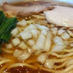 麺は、中くらいの太さのストレートです。淡麗のスープに合うしゃきっとした啜り心地、歯ごたえです。