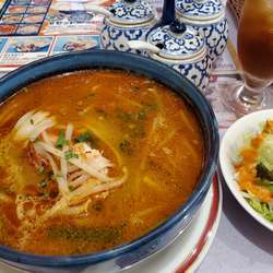 具は、もやし・こまつな・にんじん・キクラゲ。もやしがシャキシャキで美味しい。肉類不使用は寂しいが、この値段だとしかたなしか。
