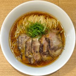 限定薩摩本枯れ鰹出汁の醤油ラーメン 1,000円。月曜日は本来休業日のところ限定メニューのみで営業。初めてなので通常メニューのことは知らない。一万円札対応券売機、水は横に、セルフ。ミツバ、大きめの刻みタマネギ、割とボリュームある炙りチャーシューが2枚。バッと見の特別感は無し。濃いめ醤油スープは確かに鰹節がしっかりと来る。麺は三河屋製麺、ツル味あり細すぎない中細ストレート。ウマい... 続きを見る