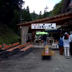出雲市南部の佐田町の山間部に、地元の方たちが年2回出されるお店で折込チラシを見て訪問しました。らーめんの他にイノシシ肉を使ったうま煮や串カツ・コロッケに新米のおにぎりも販売されていました。