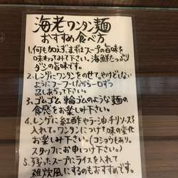 | メニュー | メニューの写真を見る 海老ワンタン麺3個入り 1000円 |