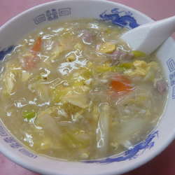 塩の餡かけで、見るからに旨そう。とろっとした熱々の餡の塩加減は丁度良く、穏やかながらもコクのあるベーススープと相まってじんわり染み入る。とろみの強さは中程度。餡は表層を覆っているがその下はさらりとしたスープ。一緒に配膳された自家製ラ... 続きを見る