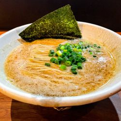 | メニュー | メニューの写真を見る 岩中豚と博多地鶏で支えた吸収豚骨 1400円 |