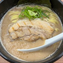 | 備考 | 鶏ガラと豚骨を長時間炊いた濃厚ラーメン 店主の修業先非公開。 製麺は三河屋製麺で麺量は ラーメン160g、つけ麺並200g・中300g。 動物系素材オンリーの野趣あふれる硬派なスープは 豚の頭骨とゲンコツを主体に 鶏を合わせて17時間ほど長時間炊き込んだ、 とろ~り濃厚ド豚骨仕立ての白湯スープ。 またスープを継ぎ足す呼び戻し方式ではなく、 使い切り方式で仕込んでいる。 カエシには味に奥行きを持たせるため、節と昆布を忍ばせる。 |