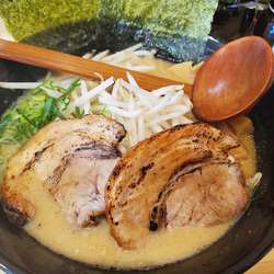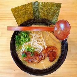 丼の到着を待つ間に聞こえてくるバーナーの音が、ついつい期待感を膨らませます。初対面の丼ですが鮮やかな色合いの炙りチャーシューと刻みネギの盛り付けにキレイな印象を受けました。スープはガッツリ味濃いめで中太の縮れ麺との絡みが悪いわけがなく、シャキシャキもやしと一緒... 続きを見る