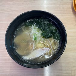 麺は柔らかめでした。シートの位置で少しだけ変わると思います。今回はレーンの最後でした。塩味は、もう少し強い方が好みでした。