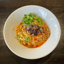 味付けは、濃厚な胡麻感で、麻辣味もしっかりと効く。甘味・酸味も感じさせるバランス。
