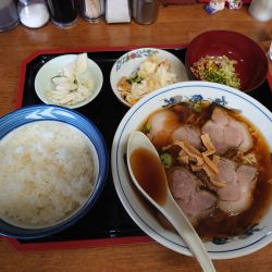 平日1230先客3。信州味噌を食べるつもりだったが新メニューのつけ麺があったので未食の焼きあご味をチョイス。汁椀に入るゴロチャーシューの他にも大振りのロースが麺に覆いかぶさっている。つけ汁の見た目はあっさり系だがしっかり濃い味。コシのある麺は少なめで物足りない😢別の器で提供される割りスープで締めました。焼きあご味のつけ汁はあまり好みではなかったが、中華そばなら味わいが違ったかも... 続きを見る