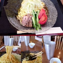 てゆかキンキンに冷えた少なめ豆乳スープと適度に柔らか食感の細麺ゎなかなか♪...てか大盛にすると麺量ゎ250㌘を超え結構なボリューム...(^O^;;