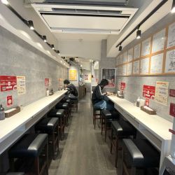 入店し券売機で表題を購入、セルフの水を持ってカウンターに着席。アジアンな若い男女のスタッフが甲斐甲斐しく働いています。ちなみに厨房は女性が担当しているみたい。