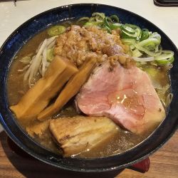 絶対に車でしか行けない住宅地にポツンと現れる外観カフェなラーメン屋。店内に入り食券機が見当たらないので恐る恐る進む。壁で見えなかったが右に曲がると発見。食券を渡し、ニンニクをお願い。席番号を支持され座席で待つ。雪が降り頻る外の景色がとても良い。10分ほどして呼ばれ配膳口にセルフで取りに行く。胡椒などは配膳口近くに置かれている。二郎系とはいえスープは煮干し主体なので野菜とニンニク... 続きを見る