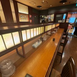 店内は天井が高く和風で落ち着いた、今日現在中央に下に棚のある対面式12人掛けテーブル席が1卓に4人掛けテーブル席が4卓、6人掛けテーブル席が2卓あり氷入りお水は出して頂... 続きを見る