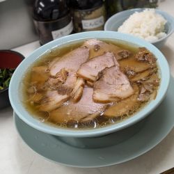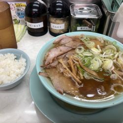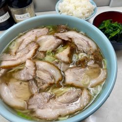 ちゃん系らしい 豚清湯に油は多め 他店より課長はおとなし目でチャーシューは厚目で麺のチャー巻きはチャーサンドになりがち😂無料のライス&青カッパも嬉しいの~