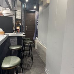 店内はグレー基調のシックでオシャレな、今日現在厨房向きカウンター13席?のみでお水は出して頂きました(椅子下に荷物置き、奥突き当たりにお手洗いあり)。