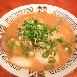 豚骨醤油スープのラーメンを提供。市の中心部にあるにも拘らず、安い。