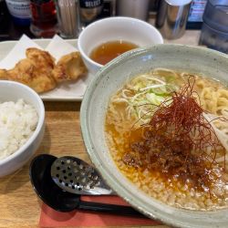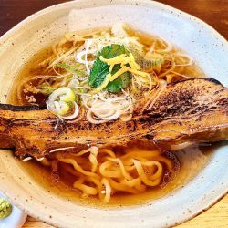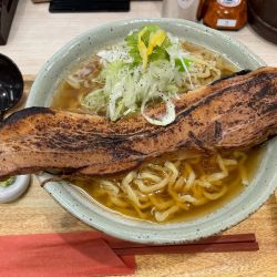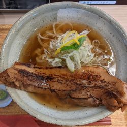 着丼の時から鰹の良い香りがする。ネギ、ゆず、わさびがあり味変して楽しむらしい。どれもしっかり味が変わって美味しい。麺も小麦の良い香りがしてスープによく合う。極めつけは物凄いインパクトのトロ豚チャーシュー。とにかくデカい。そして美味い。1杯の金額がどんどん上がって... 続きを見る