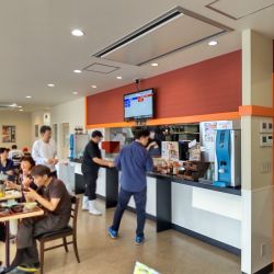 13:50頃訪問。先客多数だったが、時間的に後客は少数。店内は割と広く、多数のテーブル席と短いカウンターが設けられている。簡素な内装だが窮屈さや不潔感は無く、居心地は悪くない。男女数名の店員さんによる切り盛りで、オペレーション、接客はスムーズ。