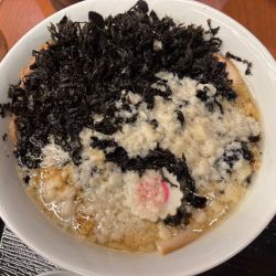 関西の知人と呑みの〆ラーメンで食べてきました。 麺も太くスープにマッチしていて美味しかったです。