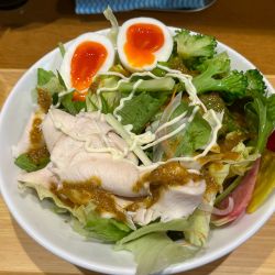 券売機で興味のあったサラダ麺がこの時季は「冷やし」になっており、タッチパネルもサラダ麺はその一択だったので、そのパネルをタッチ。