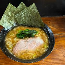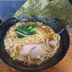 家系ラーメン 味玉900円。最寄りは大井町線荏原とのこと。入店前券売機。入って水。カウンターと座敷なので席数は多いがこの日はワンオペで大変そう。12時20分カウンター満席、座敷へ。ライス無料は麺類900円以上の場合なので家系ラーメン単品では不可。海苔3枚、大きめレアチャーシュー、ほうれん草。麺は柔らかめストレートで多くはない。鶏油?は特に香り無く、スープは家系というにはかなりア... 続きを見る