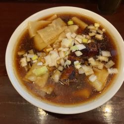 | 備考 | 並ぶ際の禁止事項。 ・横入り、代表待ち ・喫煙(電子タバコ含む) ・いなげやさんの駐車場に車止める ・ポイ捨て 修行先の日陰から学んだ手打ち麺とのこと 店主は日陰にて 朝の仕込みを手伝い、営業中もお店の奥にてサポートしていたそう。 全てが手作りをモットー。 店内メニューの木札は店主直筆の文字。 麺と同じ生地のワンタンの皮はもちろん自家製で打って仕込む。 中身の餡は豚と牛の合い挽肉にゴマ油、鶏油、生姜、ニンニク。 「もち小麦」に「はるゆたか」を配合した 新感覚・新食感のその日に手打ちして提供する 超幅広手打ち麺は何㎝幅か決めずに 店主の感覚でランダムに手切りする。 特に食べ方の指南はなく、難儀して啜るもよし、 大半の人が食べやすい長さに 噛み千切ってモグモグ咀嚼するもよし。 また麺量は並盛200g・大盛300gとなっている。 ガツンと生姜が効いたスープは 鶏と2種の煮干しに少しアサリを加える。 カエシには上質な醤油を使用。仕上げ油は鶏油。 「生姜丼」は肉そぼろ、ネギ、チャーシューを カエシと生姜で合わせて焼いた具材。 ※裏取り及び精度の高い情報をまとめております。 (「ラーメンWalker東京2025」と 「おとなの週末2025年2月号」の紹介記事を含む) 塩味風塩ラーメンで山椒入りの「淡口変更」は 開店当初からおおよその味は決まっていたそうだが、 開店以来あまりの忙しさに、なかなか着手できず、 オープンから半年以上経過した12月23日に待望のローンチ。 |