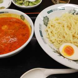 つけ汁は朱色。