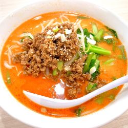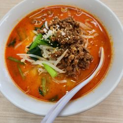 ゴマ香る担々スープにたっぷりの挽肉が嬉しい🍖麺は思った以上に細麺で、これが意外にも良かった🍜セットで頼んだ餃子は、お手本のようなハネが付いた、ゴロゴロ野菜のたっぷり餃子🥟看板メニューとして異論のない一品✨夕方、近隣の学生で賑わうコスパ良き中華料理店でした🌈