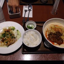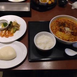 置かれてあったメニューなどを確認してタブレットにておすすめセットである、担々麺Neo 分離の魔力~際立つスパイス+わたしだけの中華まん~free style+ミニごはん 2110円(税込2321円)を注文~