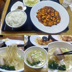 てゆか最初に到着の麻婆豆腐ゎ辛さ控えめながらも山椒が効いており良いお味♪ 思ってたよりも多めに盛られたライスと合わせると無限に喰える...(苦笑)