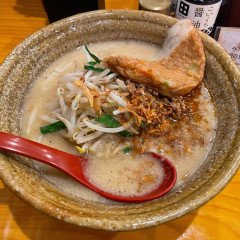 細かな背脂たっぷりのスープは元々の塩気が強い味を中和し、なんともまろやかで飲みやすいものに変える。