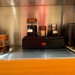 卓上にはお水ピッチャー、コップ、ケースに入った割り箸、楊枝、紙ナプキンが... 続きを見る