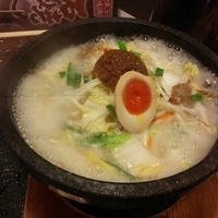 こちらもお店特有の石焼、ぐつぐつです、麺をつけて別皿に移すチョット不思議な食べ方