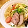 20時前に到着、先客4名、後客なし。目当ての「塩野菜たっぷりそば」を注文し、4分程で提供